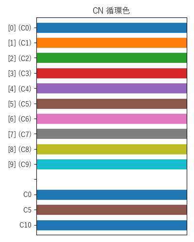 ax.set_title('CN 循環色\n(大文字のみ有効)')