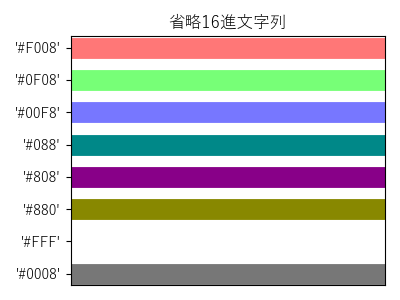 '#0000FF80'省略16進文字列 3.2 RGB:'#rgb' ('#rrggbb' の省略形)